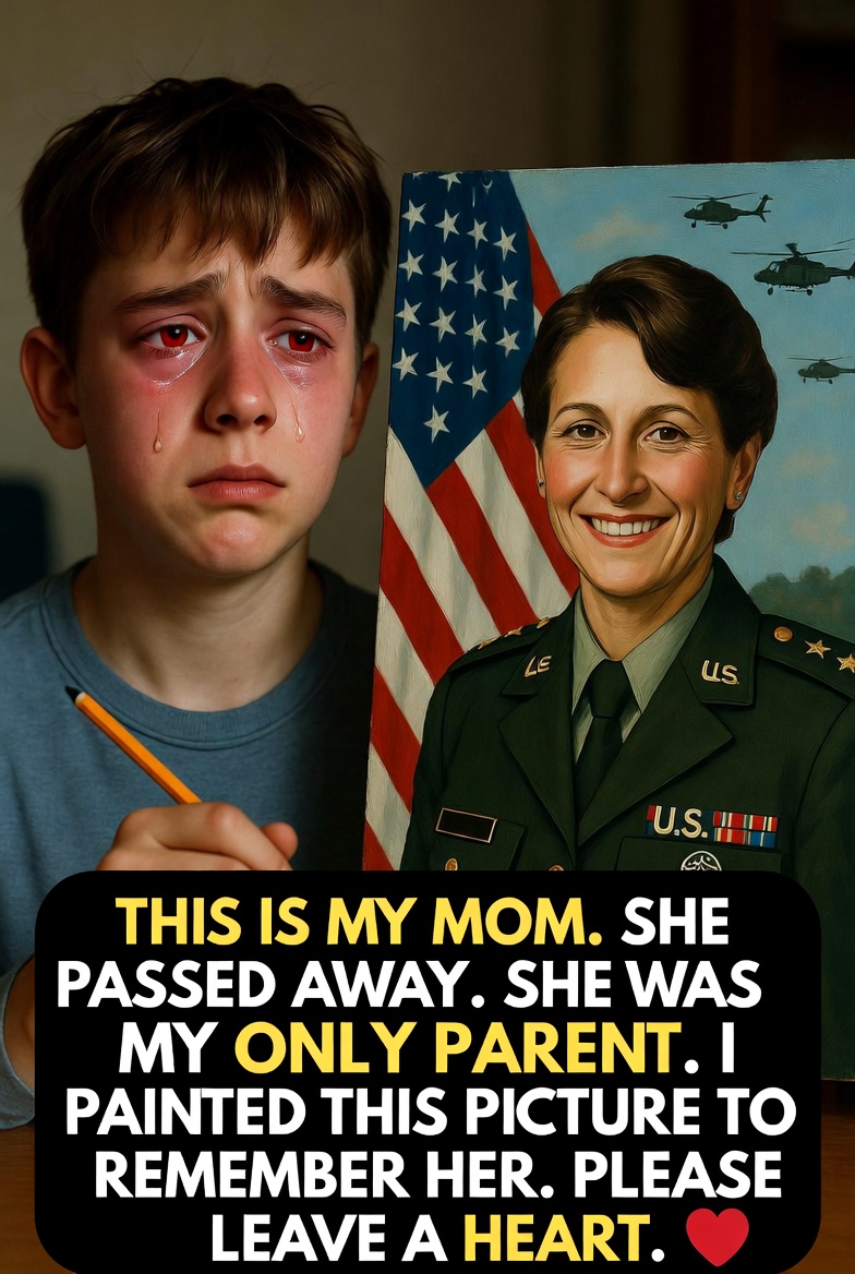 He stands beside a painting he created with his own hands. In his eyes are tears, in his hand a pencil, and in his heart a love that refuses to disappear. The woman in the painting is his mother. She passed away. She was his only parent, his protector, his entire world.