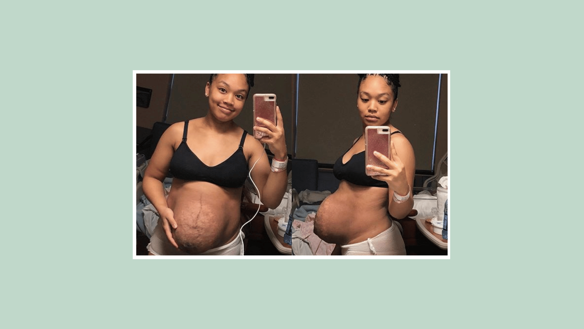 From a full, expectant belly to arms wrapped around new life, this side-by-side moment captures more than change—it captures truth.