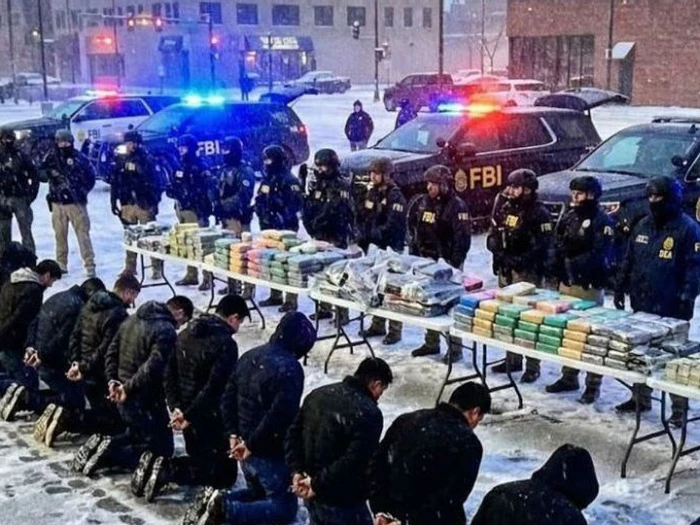 Photo Context: Federal agents in winter gear are shown standing in a snowy environment as part of a law enforcement operation.