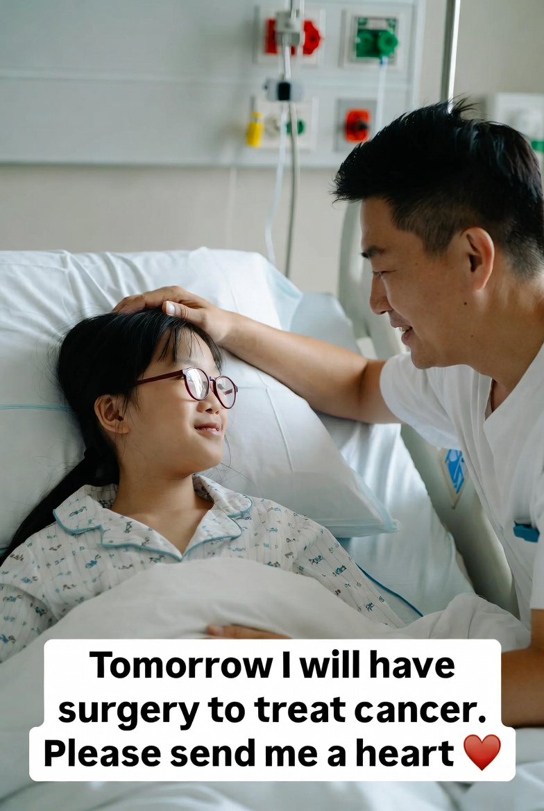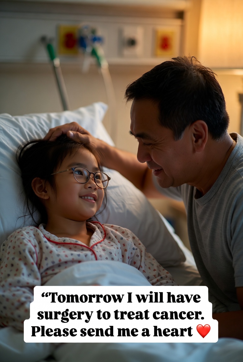 She smiles softly, brave beyond her years, even as fear flickers in her eyes. Her father stays close, his hand steady, hiding the worry in his heart. Her mother gently strokes her hair, a wordless promise that she is not alone.