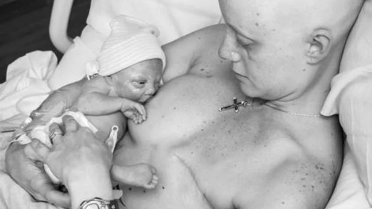 In a now‑viral image by photographer Kate Murray, Sarah nurses her newborn with her remaining breast — a moment that spread across the world as a symbol of love, courage, and resilience.
