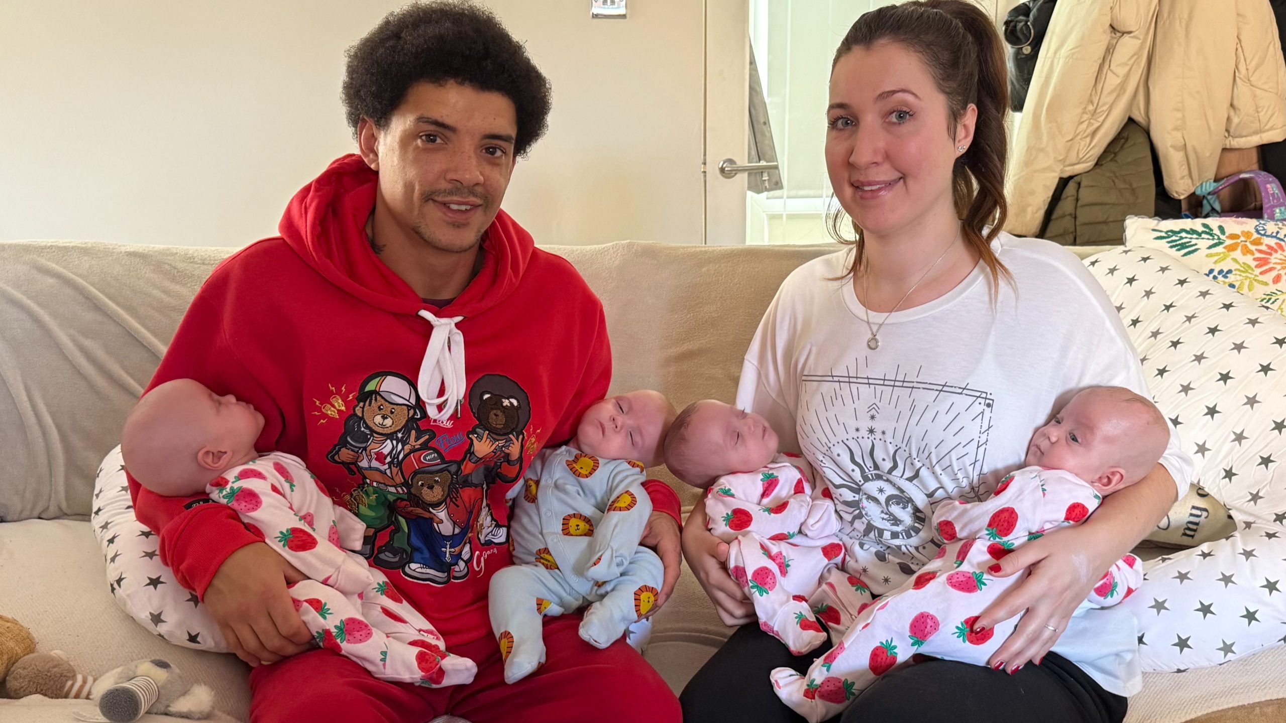 All four home. Laughter echoing instead of beeps. Four little hearts beating together under one roof. Chaos? Yes. Love? A thousand times more