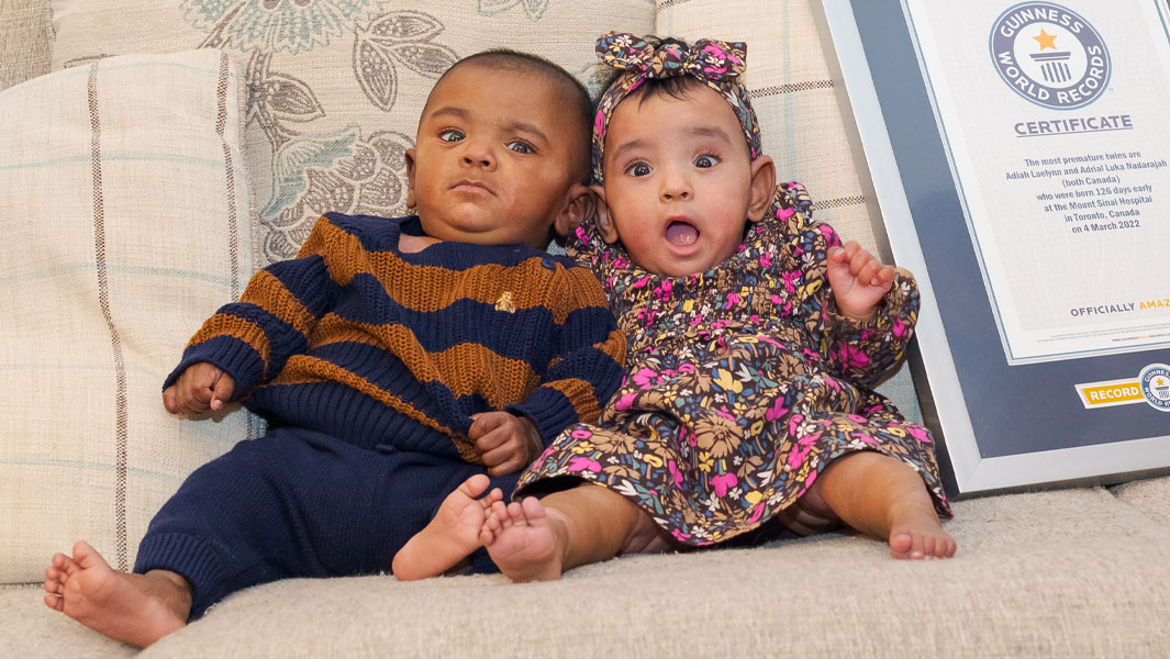 Toronto, Canada — In a groundbreaking medical achievement, Adiah Laelynn and Adrial Luka Nadarajah have been certified by Guinness World Records as the most premature twins ever to survive .