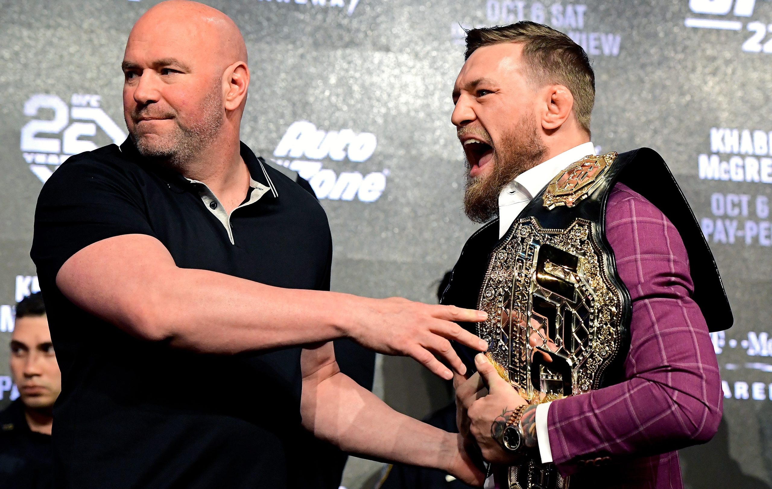 Hours later in the cage, Conor appeared unusually drained — slow footwork, early fatigue, glassy eyes. Khabib wasted no time: textbook takedown, relentless ground-and-pound, and a rear-naked choke that ended it at 3:47