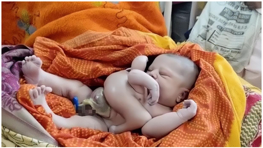 Amidst the shock, a healthy baby boy took his first breath—but beside him, his sister was born with the weight of a partially fused twin, carrying extra limbs on her tiny frame. She is a warrior, breathing through oxygen support, stable and fighting for a chance at a normal life.