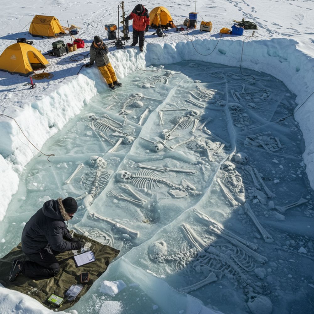 In a vast, silent wilderness of ice and wind, a massive rectangular pit cuts deep into the frozen earth. Within its glacial walls lie dozens of human skeletons — perfectly preserved, untouched by time. Each bone tells a story that history forgot.