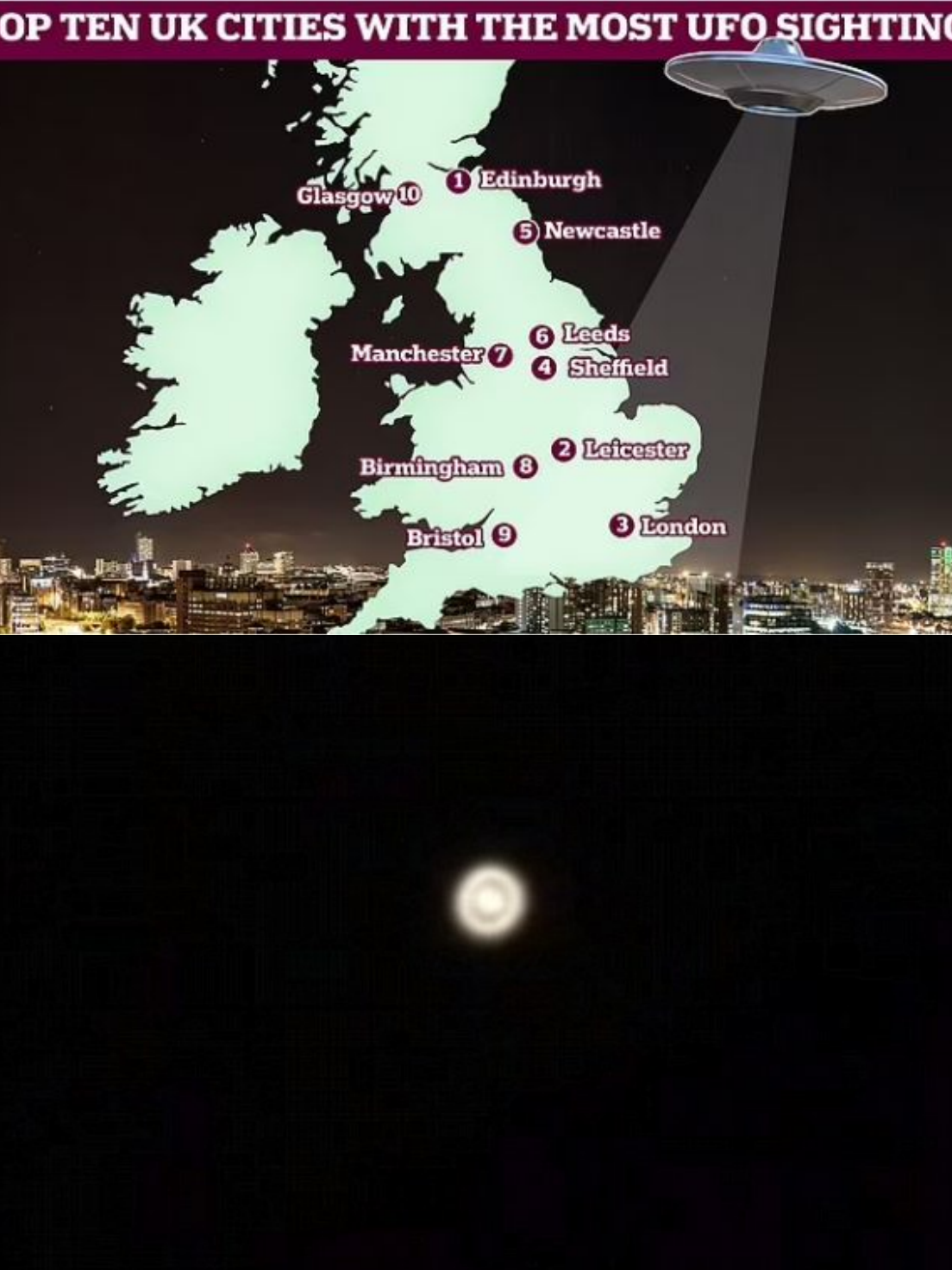Those in Edinburgh think the latter, as it has been named the top city in the UK for UFO sightings.A survey has found that 18 per cent of residents in Edinburgh claim to have spotted something otherworldly in the sky. London and Leicester came second and third on the list, with 14 and 12 per cent respectively, according to the research commissioned by the National Geographic